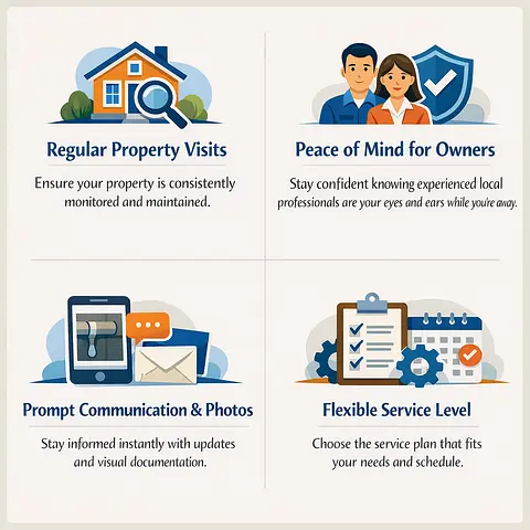 Weekly home check-ins and walkthroughs by a trusted local handyman—ideal for absentee owners, snowbirds, vacationers and second-home owners who want eyes and ears on their home while away.